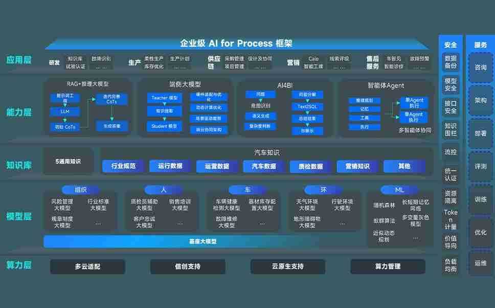 壹号娱乐问学智车解决方案是一套基于AI技术的汽车行业智能化系统,,,,覆盖从底层算力到顶层AI应用的全栈方案。。。。方案由算力层、、模型层和应用层组成:算力层,,方案支持多种一体机配置,,,,具备云端灵活部署、、、、多云适配以及动态优化计算资源的能力;模型层,,壹号娱乐问学平台版提供了企业级AI应用一站式构建与管理平台,,,支持基于后训练强化技术的汽车企业专属模型的训练、、评测和运营;应用层,,,,壹号娱乐问学DeepSeek版提供包括超级员工、、智能招采、、智能营销、、智能客服、、、、AI for BI等一系列解决方案,,可助力汽车行业实现数字化转型,,,,让管理更智能、、、、响应更敏捷。。